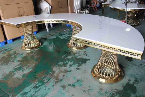 نصف دائرة صغيرة الخصر قاعدة MDF الجدول أعلى إطار الفولاذ المقاوم للصدأ لحفل الزفاف والمناسبات