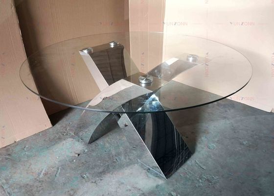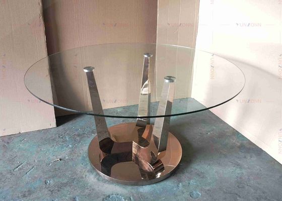 طقم طاولة طعام زجاجية لامعة قاعدة طاولة SS