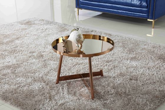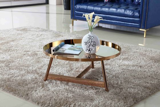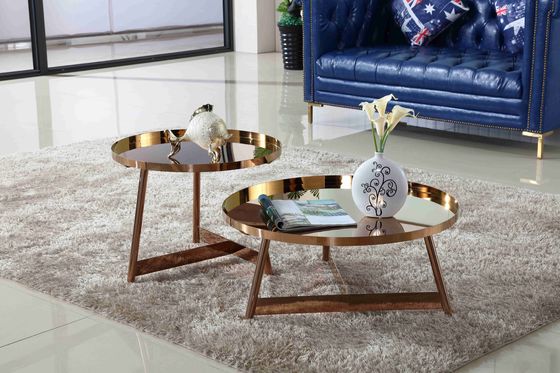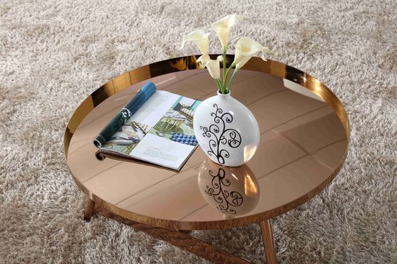 تصميم داخلي فاخر بإطار من الفولاذ المقاوم للصدأ ، طاولة قهوة مستديرة باللون الذهبي الوردي اللامع لأثاث غرفة المعيشة