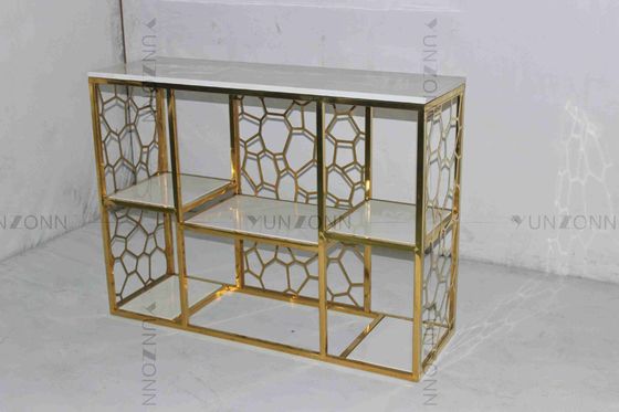 تصميم مجوف بنمط نحت خزانات تخزين رفوف مطلية بالذهب من الرخام