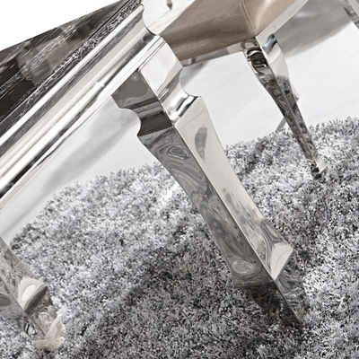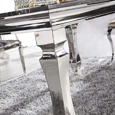 طاولة طعام رخامية طاولة منشورية ذات أرجل 8 مقاعد أثاث منزلي فضي