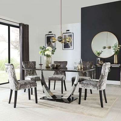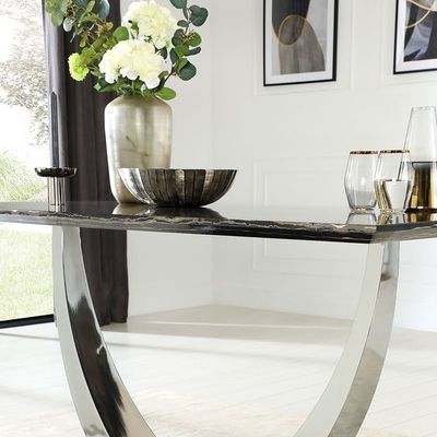 مائدة طعام فضية من الستانلس ستيل والرخام الأسود ومطلية بالكروم مقاس 150 * 90 * 75