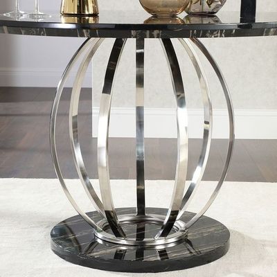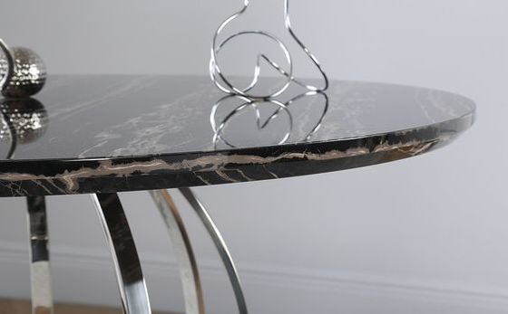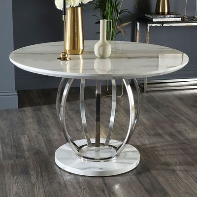 طاولة طعام فضية من الفولاذ المقاوم للصدأ مع مجموعة كراسي من الرخام اللذيذ
