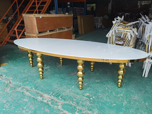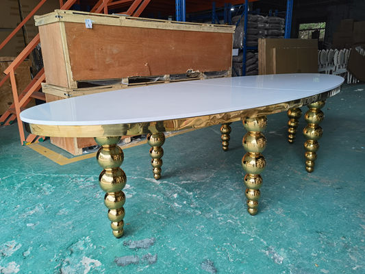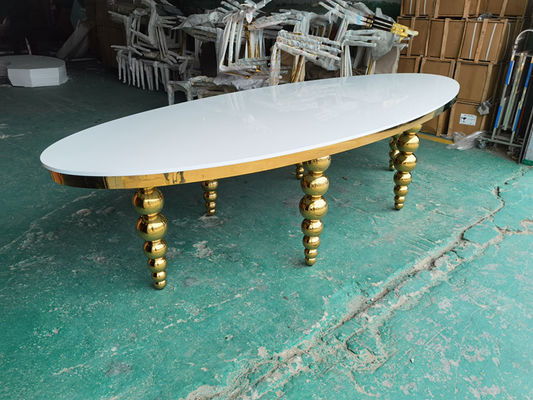 طاولة مأدبة بيضاوية MDF طاولة Ss أرجل كروية ذهبية