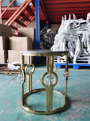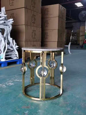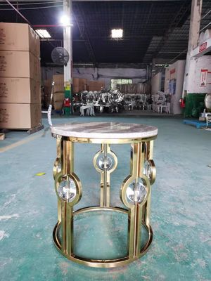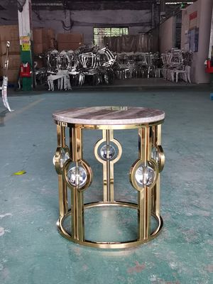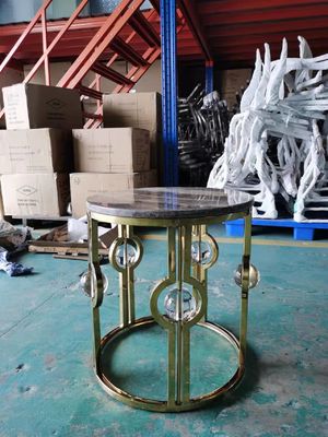 طاولة جانبية رخامية من الفولاذ المقاوم للصدأ مطلية بالذهب ضوء طاولة زاوية مستديرة من الكريستال المعدني الفاخر