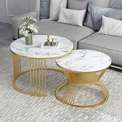 طاولة قهوة مستديرة ذات سطح زجاجي رخامي مع طاولة قهوة ذهبية