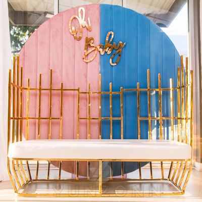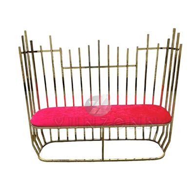 أريكة زفاف فاخرة ذات ظهر طويل بجودة عالية باللون الذهبي، تتميز بتصميم مدبب مذهل وتنجيد PU فاخر مع إطار من الفولاذ المقاوم للصدأ.