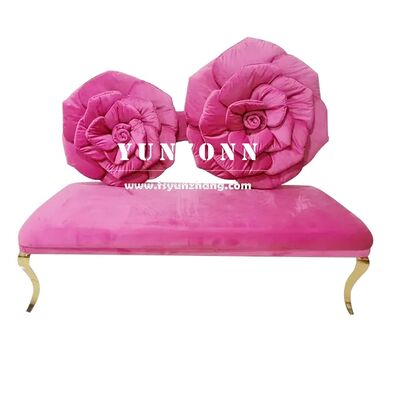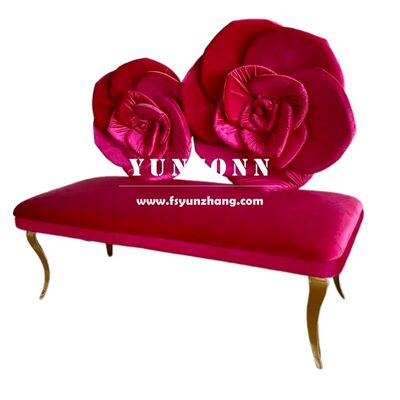 | اسم المنتج: | أريكة حديثة من الفولاذ المقاوم للصدأ بتصميم ظهر زهرة الورد مقعد مخملي وردي أحمر مفضل لدى محبي الزفاف في الفندق |