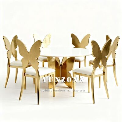 تصنيع احترافي لكرسي طعام مريح من الفولاذ المقاوم للصدأ بتصميم فراشة مع مسند ظهر ذهبي وكراسي زفاف وفعاليات |