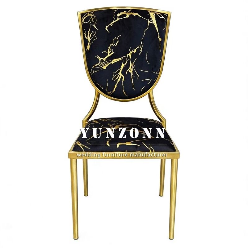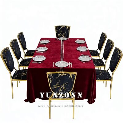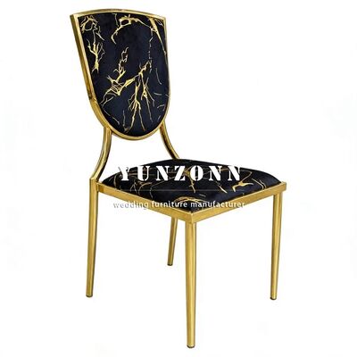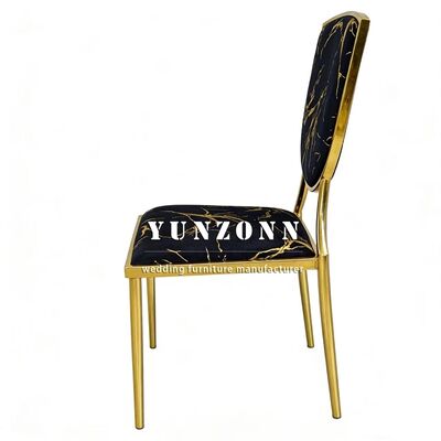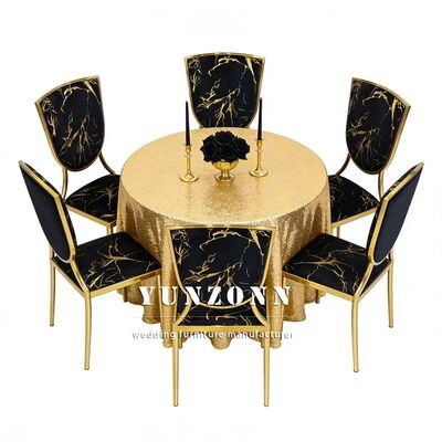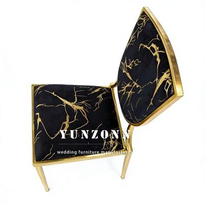 | اسم المنتج | حفلات الزفاف ذات الموضوع الذهبي والفنادق السوداء المخملية المغطاة بالمعدن كراسي العشاء القابلة للتراص |