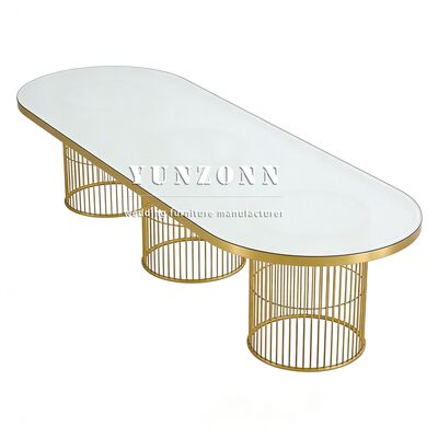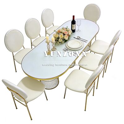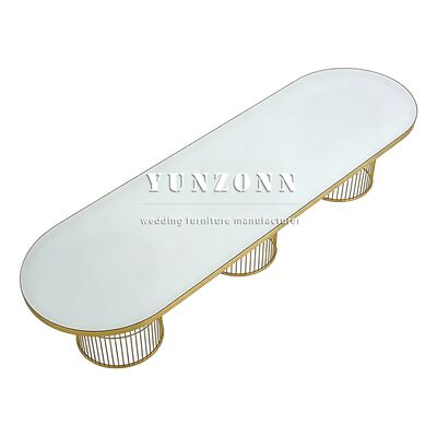 | Product Name: | New Style Event Banquet Dining Table Oval Shape Gold Steel Legs Dinner Room Wedding Table for Event Decor |