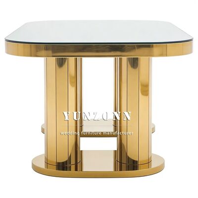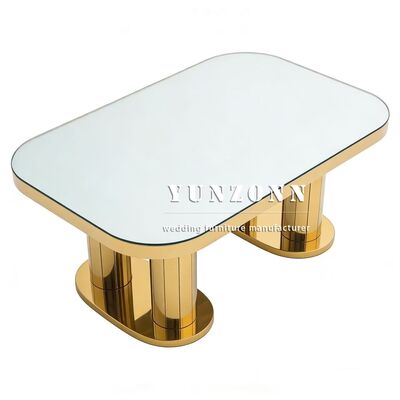 | اسم المنتج | بيع بالجملة العشاء مستطيل المرايا الزجاجية فوق الطاولة الفولاذ المقاوم للصدأ الذهبية حفلات الزفاف الفنادق أثاث طعام |