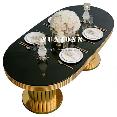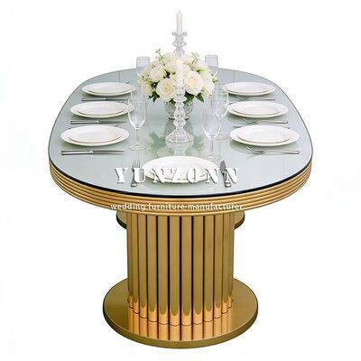 | اسم المنتج: | طقم طاولة طعام مستطيلة حديثة من الفولاذ المقاوم للصدأ مع كراسي للفنادق وحفلات الزفاف والمآدب الخارجية والمناسبات وتأجير الأثاث |