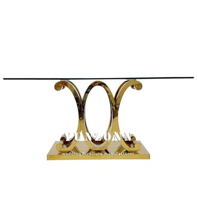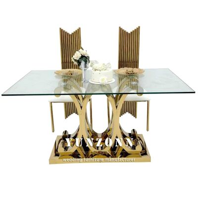 | اسم المنتج: | طاولات طعام فاخرة حديثة بأرجل ذهبية مستطيلة مزينة بالزجاج، طاولات من الفولاذ المقاوم للصدأ للمناسبات وحفلات الزفاف |