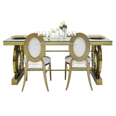 | اسم المنتج | طاولة مأدبة إطار الفولاذ المقاوم للصدأ ديكور كريستال للزفاف الفنادق الأحداث مرآة الزجاج مكتب طاولة الفندق الأثاث |
