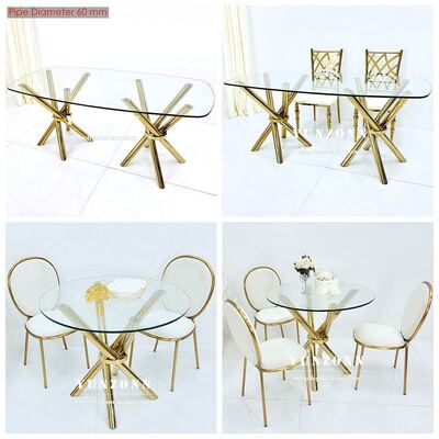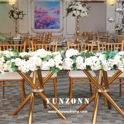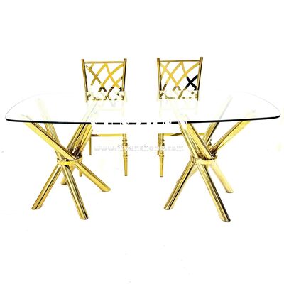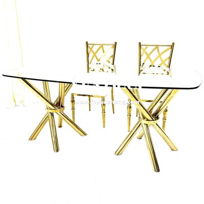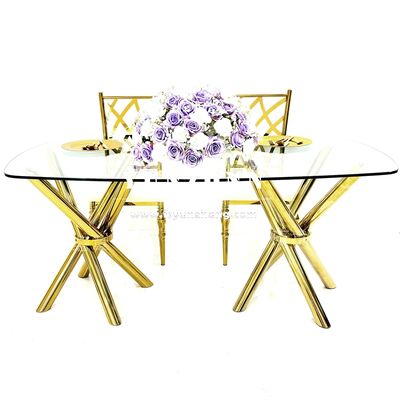 | اسم المنتج: | طاولة حفلات زفاف فاخرة من الفولاذ المقاوم للصدأ الذهبي بطلاء ذهبي، أرجل متقاطعة، زجاج شفاف |
