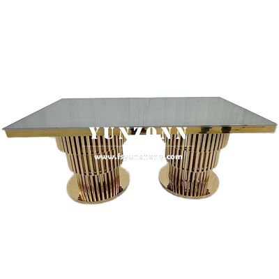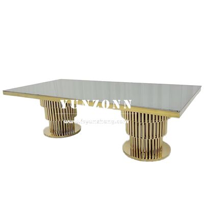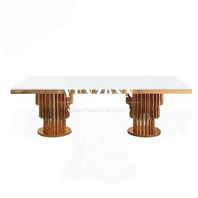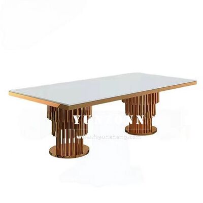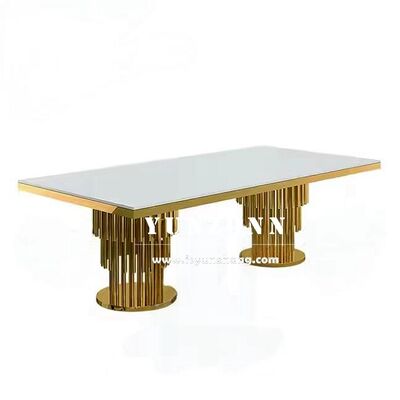 | اسم المنتج | طاولة طعام حديثة من الفولاذ المقاوم للصدأ الذهبية مع تصميم قاعدة قاعدة للاحتفالات في الهواء الطلق حفلات الزفاف والفعاليات الفندقية |