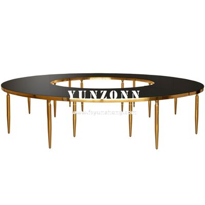 | اسم المنتج: | طاولة فاخرة حديثة بتصميم جمل ذهبي مموج من الفولاذ المقاوم للصدأ للأثاث الفندقي للمناسبات والمآدب وحفلات الزفاف نصف قمر |