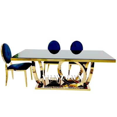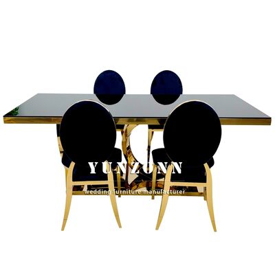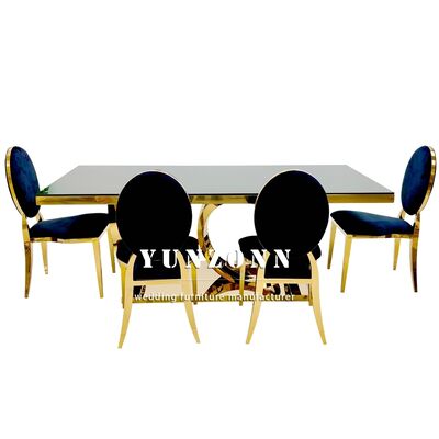 | Product Name: | Modern Luxury Gold Legs Rectangular Dining Decor Glass Tables Set Stainless Steel Tables for Events Wedding Banquet Decorations |