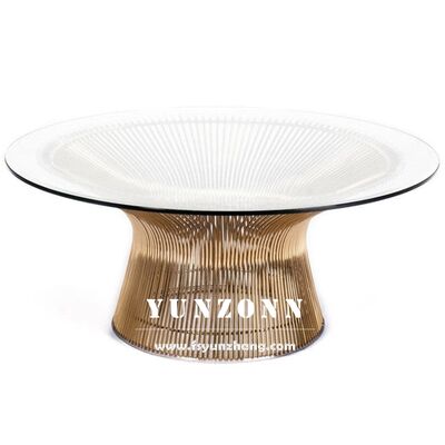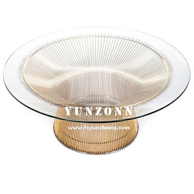 | اسم المنتج | طاولة قهوة دائرية فاخرة بتصميم مودرن من منتصف القرن من الزجاج المقوى مع قاعدة سلكية معدنية |