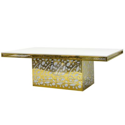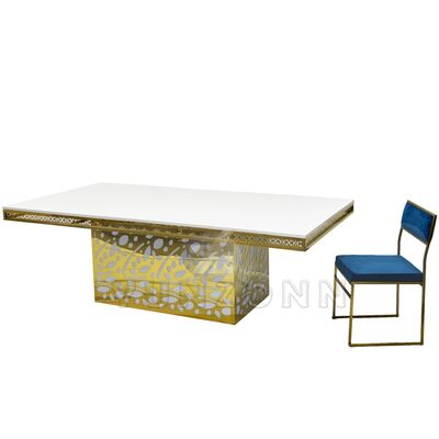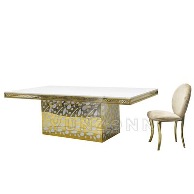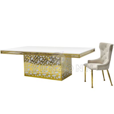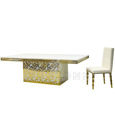 فندق فاخر من الفولاذ المقاوم للصدأ كريستال قلادة زجاج ذهبي طاولة طعام لحفلات الزفاف والمناسبات للمآدب والمطاعم والحفلات |