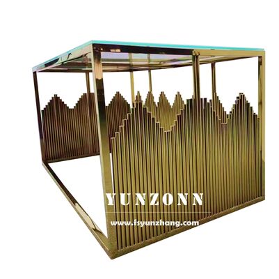 | اسم المنتج | تصميم جديد فوشان فندق أثاث الزفاف الذهب الفولاذ المقاوم للصدأ العروس والعريس مربع طاولة طعام |