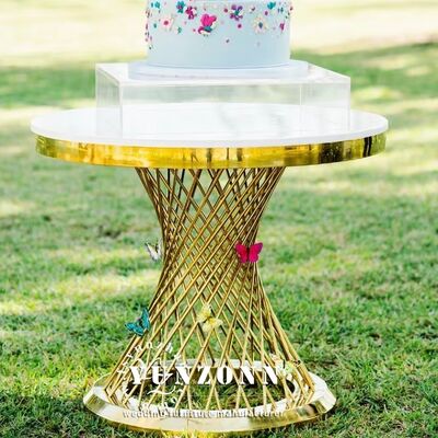 | اسم المنتج | طاولة الكعك الفاخرة الذهبية من الفولاذ المقاوم للصدأ مع رأس الزجاج المرآة للزفاف والحفلات |
