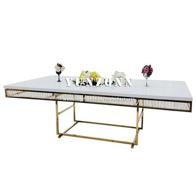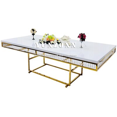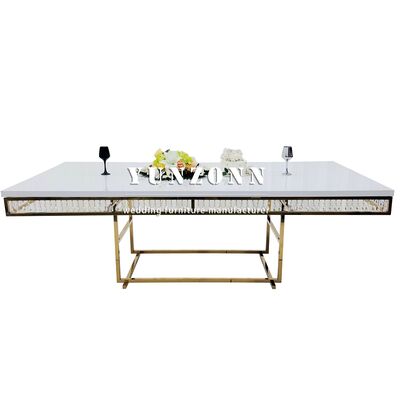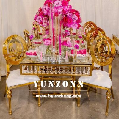 | اسم المنتج: | طاولة طعام فاخرة من الفولاذ المقاوم للصدأ والذهب والكريستال من أثاث يونغ تشانغ، طاولات وكراسي زفاف فاخرة للبيع |