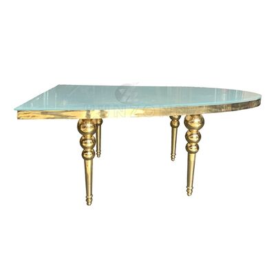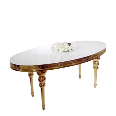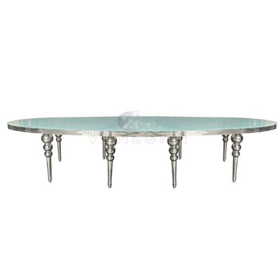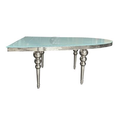 | اسم المنتج: | طاولة طعام زفاف حديثة من الفولاذ المقاوم للصدأ مع سطح زجاجي بتصميم بيضاوي ودائري للمناسبات والحفلات والفنادق الخارجية والبنوك |