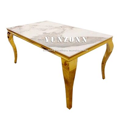 | اسم المنتج | طاولة طعام رخام يونجانغ الحديثة مجموعة 6 مقاعد مع الفولاذ المقاوم للصدأ والزجاج للفنادق والأحداث |