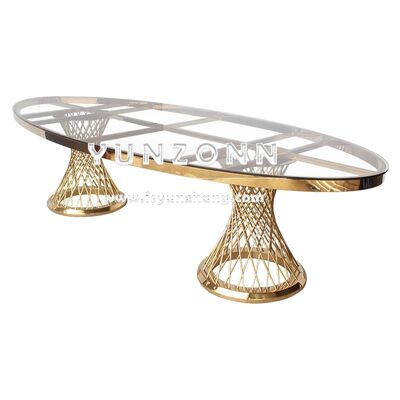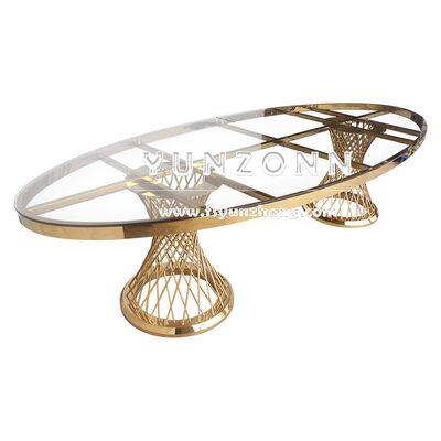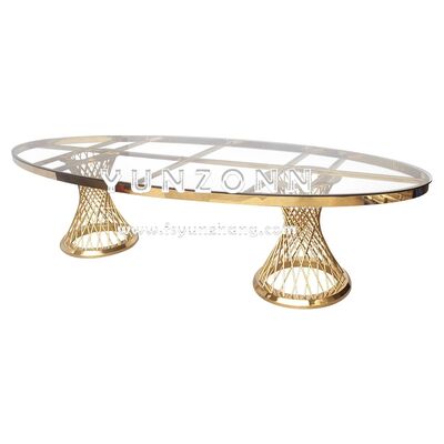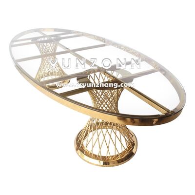 | اسم المنتج: | قطع مركزية حديثة من الفولاذ المقاوم للصدأ لطاولة طعام المطعم بتصميم زجاجي بيضاوي بأسلوب فاخر لحفلات الزفاف الخارجية والفنادق |