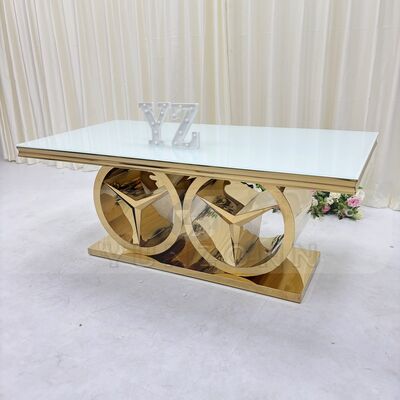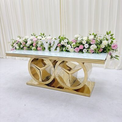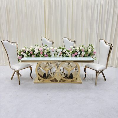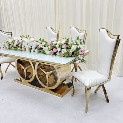 | اسم المنتج: | طاولة طعام زفاف حديثة من الفولاذ المقاوم للصدأ، أثاث فندقي خارجي جديد للحفلات والمناسبات مع زجاج و MDF |