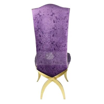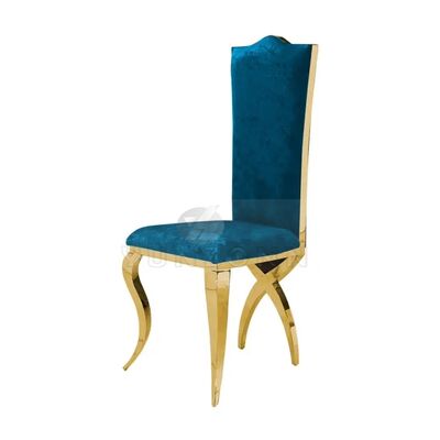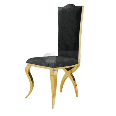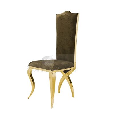 | اسم المنتج: | كرسي طعام فاخر بتصميم عرش بمسند ظهر عالٍ من الفولاذ المقاوم للصدأ الذهبي بأرجل متقاطعة للفنادق وحفلات الزفاف |