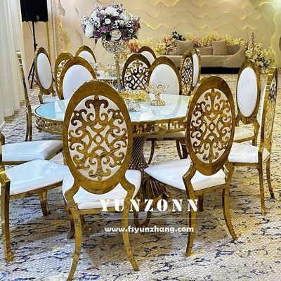 | اسم المنتج | الفاخرة الملكية والحديثة ذهب الفندق الكراسي مع النمط المنحوت خاصة المواد الفولاذ المقاوم للصدأ للزفاف كرسي طعام |